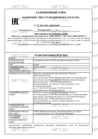Полное ОТТС ТС RU E-RU.АЖ04.01483