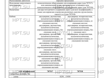 | Исполнение загрузочного пространства | технологическое оборудование для содержания дорог (для 787517) или самосвальный кузов с возможностью установки в нем технологического оборудования для содержания дорог (для 787518) кузов с возможностью установки в нем технологического оборудования для содержания дорог (для 787518) |