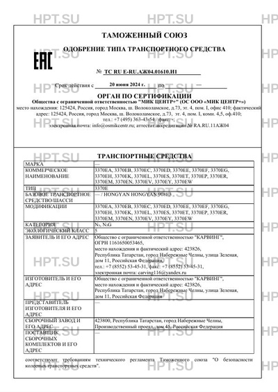 | Предприятие-изготовитель | Общество с ограниченной ответственностью "КАРВИНГ", место нахождения и фактический адрес: 423826, Республика Татарстан, город Набережные Челны, улица Зеленая, дом 11, Российская Федерация |