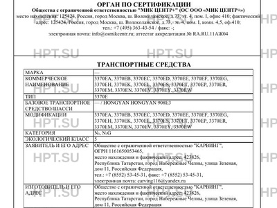 | Базовое ТС / Шасси | HONGYAN HONGYAN 908E3 |