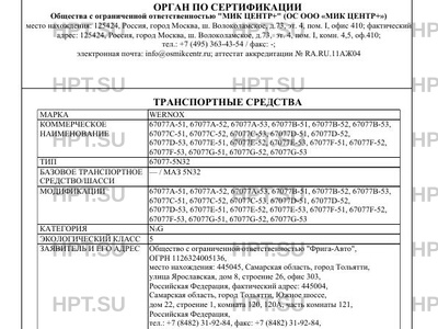 Заявитель Общество с ограниченной ответственностью "Фрига-Авто", ОГРН 1126324005136, место нахождения: 445045, Самарская область, город Тольятти, улица Ярославская, дом 8, строение 26, офис 303, Российская Федерация, фактический адрес: 445004, Самарская область, город Тольятти, Южное шоссе, дом 22, строение 1, комната 120, 120А, часть комнаты 121, Российская Федерация, тел.: +7 (8482) 31-92-84, факс: +7 (8482) 31-92-84, электронная почта: info@wernox.ru