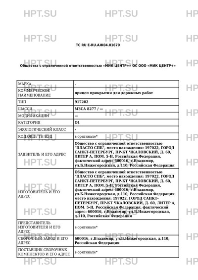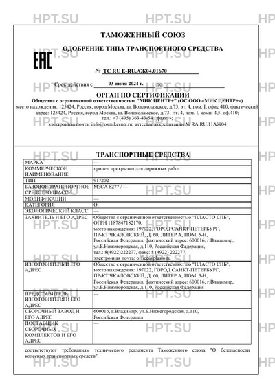 | Номер документа | ТС RU Е-RU.АЖ04.01670 |