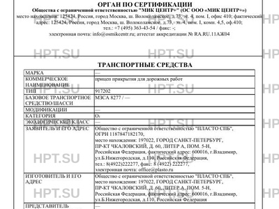 | Тип ТС | прицеп прикрытия для дорожных работ |