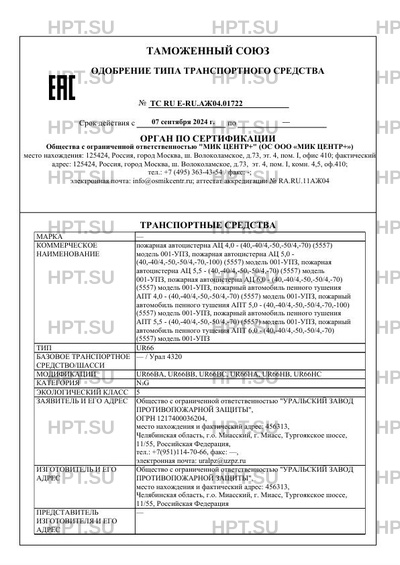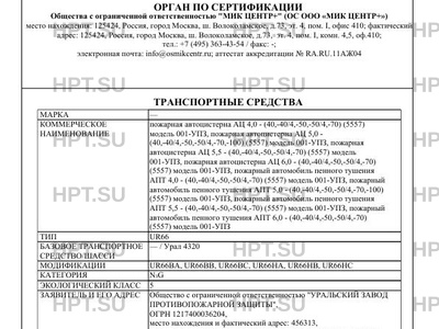 | Коммерческое наименование | пожарная автоцистерна АЦ 4,0 - (40,-40/4,-50,-50/4,-70) (5557) модель 001-УПЗ, … |