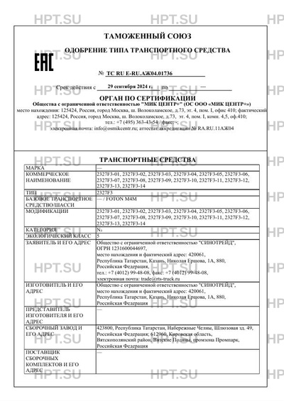 | Тип ТС | 2327F3 |
