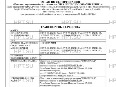 | Заявитель | Общество с ограниченной ответственностью "СИНОТРЕЙД", ОГРН 1231600044697, место нахождения и фактический адрес: 420061, Республика Татарстан, Казань, Николая Ершова, 1А, 880, Российская Федерация, тел.: +7 (4012) 99-48-08, факс: +7 (4012) 99-48-08, электронная почта: trade@rts-truck.ru |