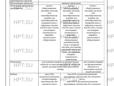 Исполнение загрузочного пространства кузов с оборудованием: цистерна для воды или пенообразователя; пенобак для пенообразователя; пожарный насос с лафетным стволом или без него; отсеки для пожарнотехнического и аварийноспасательного оборудования кузов с оборудованием: цистерна для воды или пенообразователя; пенобак для пенообразователя; пожарный насос с лафетным стволом или без него; отсеки для пожарнотехнического и аварийноспасательного оборудования; дополнительный отсек с четырьмя местами для сидения или дополнительный отсек для перевозки пожарнотехнического вооружения кузов с оборудованием: цистерна для воды или пенообразователя; пенобак для пенообразователя; пожарный насос с лафетным стволом или без него; отсеки для пожарнотехнического и аварийноспасательного оборудования