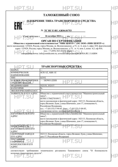 | Номер документа | ТС RU Е-RU.АЖ04.01753 |
