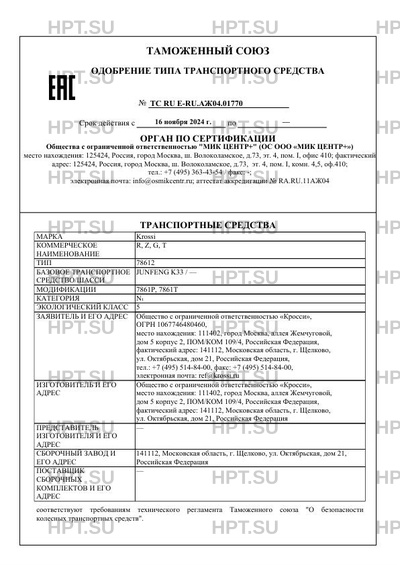 | Номер документа | ТС RU Е-RU.АЖ04.01770 |