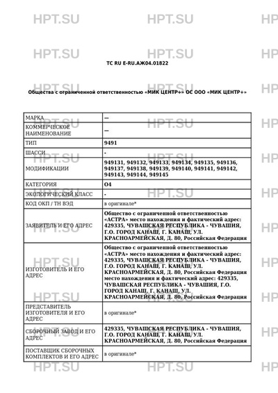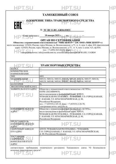 | Номер документа | ТС RU Е-RU.АЖ04.01822 |