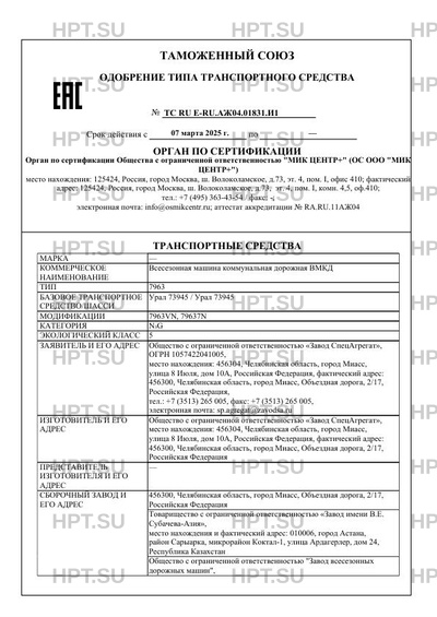 | Номер документа | ТС RU Е-RU.АЖ04.01831.И1 |