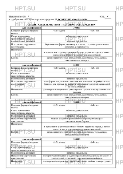 | Оборудование ТС | устройство вызова экстренных оперативных служб с автоматическим срабатыванием при опрокидывании; электронная система контроля устойчивости (ESC) по заказу: автомагнитола; электростеклоподъемники; кондиционер (хладагент R134А); устройство ограничения максимальной скорости; автономный воздушный отопитель; жидкостный предпусковой подогреватель; огнетушитель; обтекатель кабины (спойлер); проблесковый маячок оранжевого цвета для модификации 3388Е1; фонарь освещения рабочей зоны для модификаций 3388Е1, 3388М1, 3388К1, 3388К2; огнетушитель; лестница откидная; ступень откидная; инструментальный ящик; холодильно-отопительная установка (ХОУ); топливный бак ХОУ |