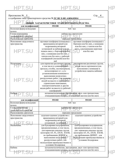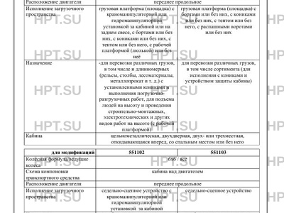 | Оборудование ТС | устройство ограничения максимальной скорости (функцию устройства ограничения максимальной скорости выполняет электронный блок управления двигателем); дневные ходовые огни; устройство вызова экстренных оперативных служб с функцией автоматического срабатывания при опрокидывании; для модификаций 551102, 551103, 551159 предназначенных для перевозки опасных грузов по классификации ДОПОГ: проблесковые маячки оранжевого (автожелтого) цвета; защита топливных баков; выключатель массы; система пожаротушения моторного отсека; по заказу: предпусковой подогреватель двигателя; кондиционер; гидравлическая лебедка; передние противотуманные фары; фонари освещения рабочей зоны, съемные коники; тент; каркас; система увязки воза; инструментальный ящик; рация; радиостанция; рабочая платформа (люлька); противооткатные упоры; тахограф с системой криптографической защитой информации; независимый отопитель кабины; аэродинамические обтекатели (верхний и боковые); для 551102, 551103: устройство ограничения максимальной скорости |