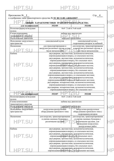 Модификации 352105, 352106, 352107, 352108, 352109, 352110