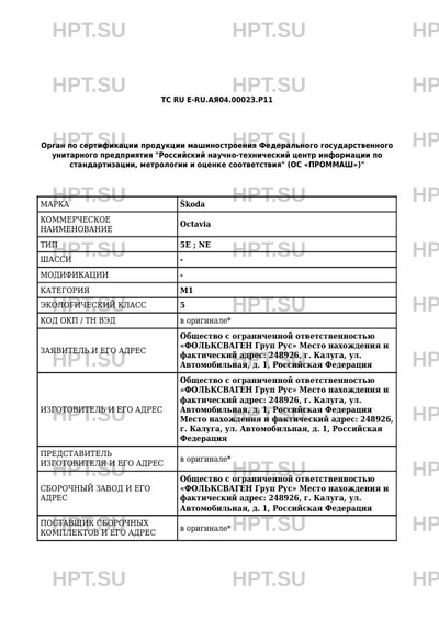 | Номер документа | ТС RU Е-RU.АЯ04.00023.Р11 |