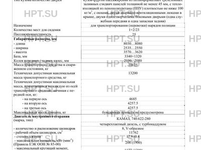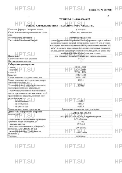 | Оборудование ТС | защитные металлические решетки окон кабины автомобиля и кузова-фургона, трос, медицинская аптечка (2 шт.), огнетушитель (2 шт.), знак аварийной остановки, система отопления, сигнально-переговорное устройство, устройство ограничения максимальной скорости (функцию устройства ограничения максимальной скорости выполняет электронный блок управления двигателем), дневные ходовые огни (для модификаций, соответствующих требованиям Правил ЕЭК ООН №48-04), по заказу: предпусковой подогреватель двигателя, лебедка, коробка отбора мощности, сигнально-громкоговорящая установка (СГУ), кондиционер, устройство вызова экстренных оперативных служб с функцией автоматического срабатывания при опрокидывании или без нее, дневные ходовые огни (для модификаций, соответствующих требованиям Правил ЕЭК ООН №48-03), передние противотуманные фары (кроме модификаций, соответствующих требованиям Правил ЕЭК ООН №48-04). |