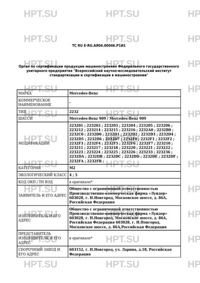 | Базовое ТС / Шасси | Mercedes-Benz 909 / Mercedes-Benz 909 |