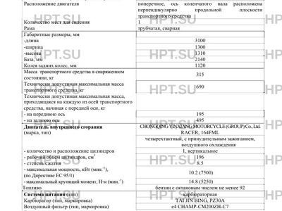 | Марка ТС | RACER |