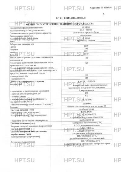 ДВС RACER, 170FMN четырехтактный, с принудительным зажиганием, воздушного охлаждения