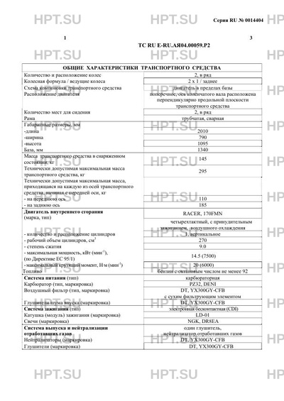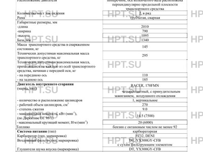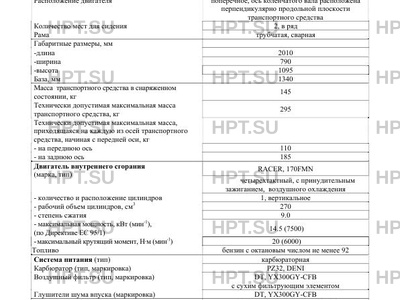 | ДВС | RACER, 170FMN четырехтактный, с принудительным зажиганием, воздушного охлаждения |