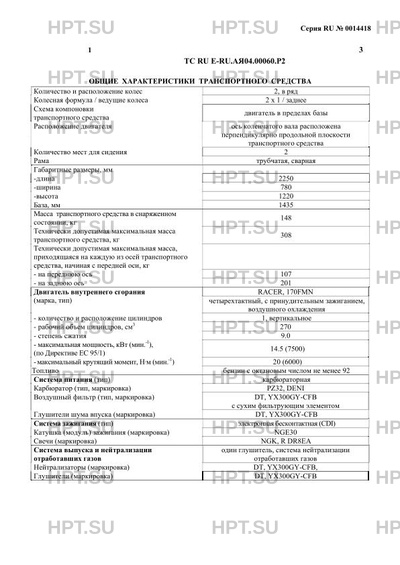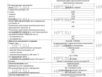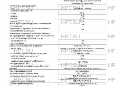 | ДВС | в пределах базы RACER, 170FMN четырехтактный, с принудительным зажиганием, воздушного охлаждения |
