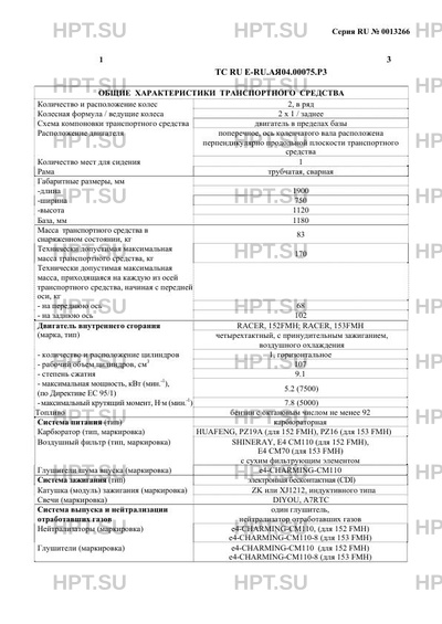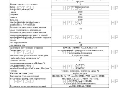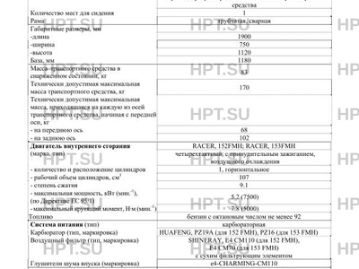 | ДВС | RACER, 152FMH; RACER, 153FMH четырехтактный, с принудительным зажиганием, воздушного охлаждения |
