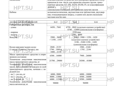 | Исполнение загрузочного пространства | седельно-сцепное устройство, самосвальная платформа |