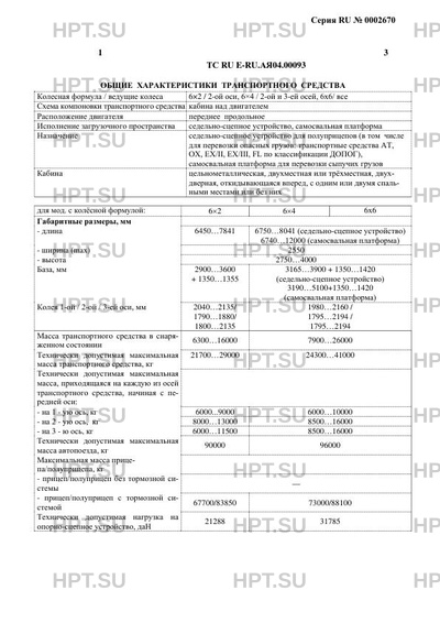 | Оборудование ТС | тахограф, кондиционер (климат-контроль) (хладагент R-134A), холодильник (хладагент R-134A), компрессор, аудио-видеотехника, навигационная система, подушка безопасности, лебёдка, дополнительный отопитель, один или два проблесковых маячка желтого цвета. |