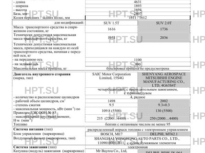 | ДВС | SAIC Motor Corporation Limited, 15S4G SHENYANG AEROSPACE MITSUBISHI ENGINE MANUFACTURING CO., LTD, 4G63S4T четырёхтактный, с принудительным зажиганием, с турбонаддувом |