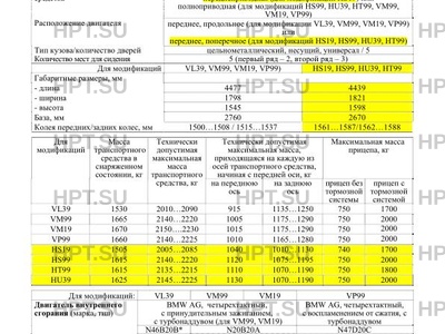 Модификации VL39, HS19, HS99, HU39, HT99, HS19, HS99, HU39, HT99