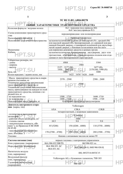 | Базовое ТС / Шасси | VOLKSWAGEN, 7J0 / - |
