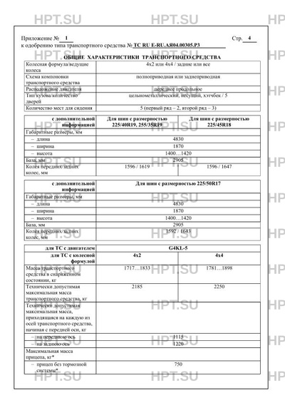 | Тип ТС | Тип двигателя G4KL-5 Обозначение на блоке двигателя: G4KL Тип двигателя G6DP-5 Обозначение на блоке двигателя: G6DP Для шин с размерностью 225/50R17 Для шин с размерностью 225/45R18 Для шин с размерностью 225/40R19, 255/35R19 |