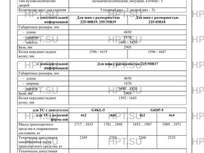 | Тип ТС | Тип двигателя: G4KL-5 Обозначение на блоке двигателя: G4KL Тип двигателя: G6DP-5 Обозначение на блоке двигателя: G6DP Для шин с размерностью 225/50R17 Для шин с размерностью 225/45R18 Для шин с размерностью 225/40R19, 255/35R19 |