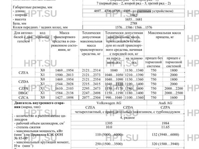 | Тип ТС | Тип двигателя транспортного средства определяется по обозначению на блоке двигателя: Тип двигателя(обозначение на блоке двигателя): CZEA(CZE), CZDA(CZD), CZPA(CZP), DBGC(DBG), CZCA(CZC) |