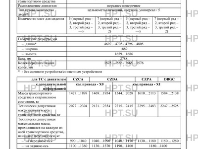 | Тип ТС | Тип двигателя транспортного средства определяется по обозначению на блоке двигателя. Тип двигателя (Обозначение на блоке двигателя): CZDA(CZD); CZPA(CZP); DBGC(DBG); CZCA(CZC). К экологическому классу 5 относятся транспортные средства с двигателями DBGC. К экологическому классу 6 относятся транспортные средства с двигателями CZDA, CZPA, CZCA. код привода - X0 код привода - X1 |