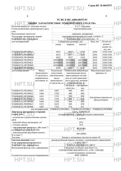 | Коммерческое наименование | T15, T17, T19, TIGGO4, TIGGO5, TIGGO5T, TIGGO5S, TIGGO7, TIGGO7S |
