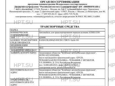 | Коммерческое наименование | Автомобиль для транспортирования нарядов полиции АТНП-5350 |