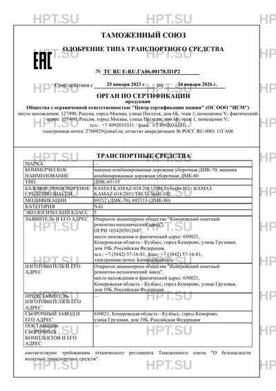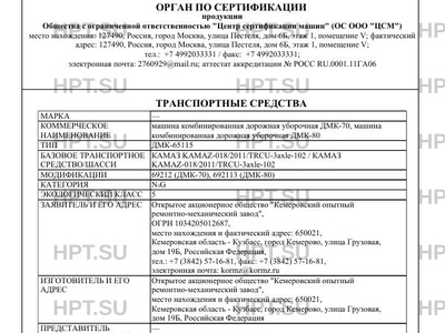 | Коммерческое наименование | машина комбинированная дорожная уборочная ДМК-70, машина комбинированная дорожн… |