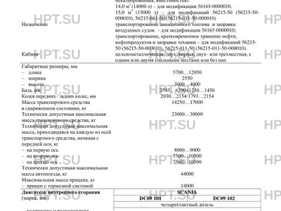 | Исполнение загрузочного пространства | цистерна чемоданообразного сечения, калиброванная или некалиброванная, вместимостью: 14,0 м3 (14000 л) - для модификации 56165-0000010, 15,0 м3 (15000 л) - для модификаций 56215-50 (56215-50- 000010), 56215-011-50 (56215-011-50-000010) |