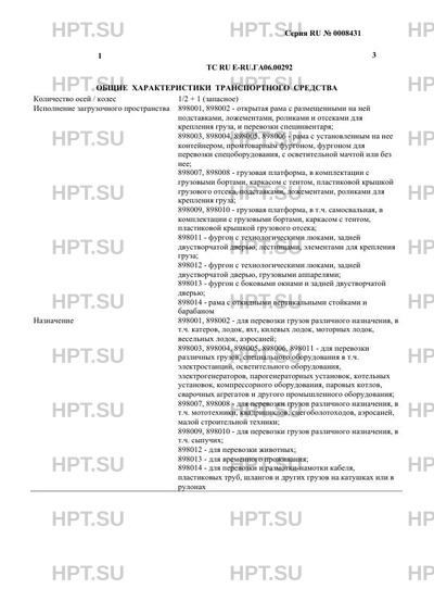 | Оборудование ТС | опорное колесо или стойка, лебедка (для 898001, 898002, 898003, 898004, 898014) |