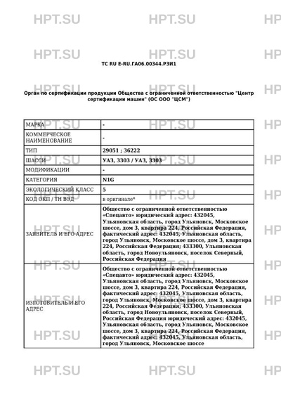 | Номер документа | ТС RU Е-RU.ГА06.00344.Р3И1 |
