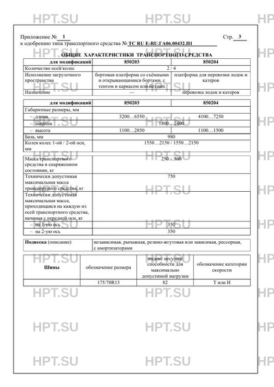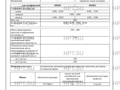 | Оборудование ТС | каркас тента, тент, борта наращенные (для 850203); опорное устройство, лебедка (для 850204) |