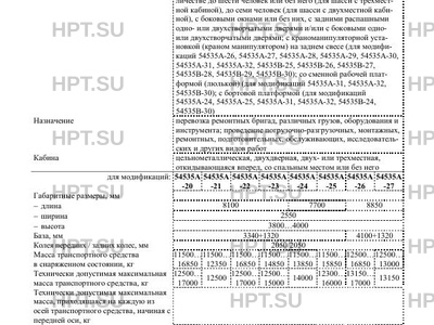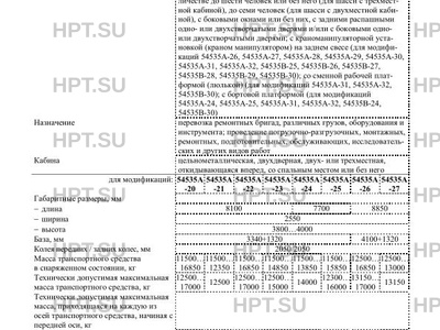 | Дополнительная информация | Транспортные средства не предназначены для перевозки опасных грузов. Модификации применяемых шасси: 5350-D5 – для модификаций 54535A-20, 54535A-21, 54535A-22, 54535A-23, 54535A-24, 54535A-25, 54535A-26, 54535A-27, 54535A-28, 54535A-29, 54535A-30, 54535A-31, 54535A-32; 43118-А5, 43118-50, 43118-RR, 43118-RS – для модификаций 54535В-20, 54535В-21, 54535В-22, 54535В-23, 54535В-24, 54535В-25, 54535В-26, 54535В-27, 54535В-28, 54535В-29, 54535В-30, 54535В-31, 54535В-32. |