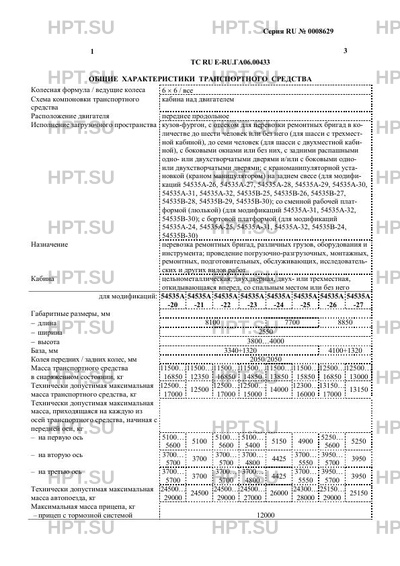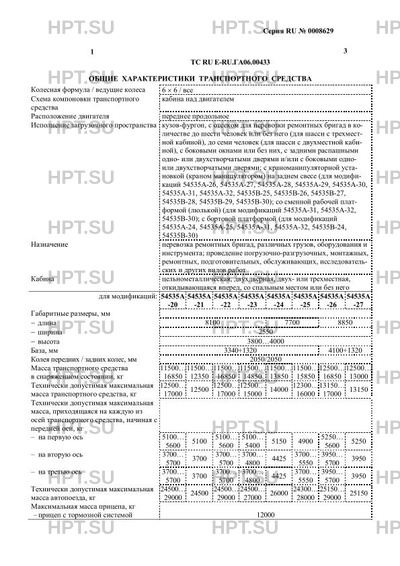 | Тип ТС | Транспортные средства не предназначены для перевозки опасных грузов. Модификации применяемых шасси: 5350-D5 – для модификаций 54535A-20, 54535A-21, 54535A-22, 54535A-23, 54535A-24, 54535A-25, 54535A-26, 54535A-27, 54535A-28, 54535A-29, 54535A-30, 54535A-31, 54535A-32; 43118-А5, 43118-50, 43118-RR, 43118-RS – для модификаций 54535В-20, 54535В-21, 54535В-22, 54535В-23, 54535В-24, 54535В-25, 54535В-26, 54535В-27, 54535В-28, 54535В-29, 54535В-30, 54535В-31, 54535В-32. |