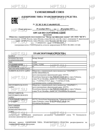 ОТТС ТС RU E-RU.ГА06.00493.П2