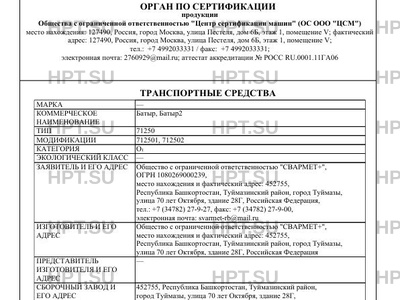 | Орган по сертификации | Орган по сертификации продукции Общества с ограниченной ответственностью "Центр сертификации машин" (ОС ООО "ЦСМ") |