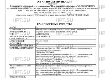 | Заявитель | Акционерное общество «Варгашинский завод противопожарного и специального оборудования», ОГРН 1044533001413, место нахождения и фактический адрес: 641231, Курганская область, Варгашинский район, рабочий поселок Варгаши, улица Кирова, дом 83, Российская Федерация, тел.: +7 (35233) 2-10-09, факс: +7 (35233) 2-15-26, электронная почта: priemppso@mail.ru |