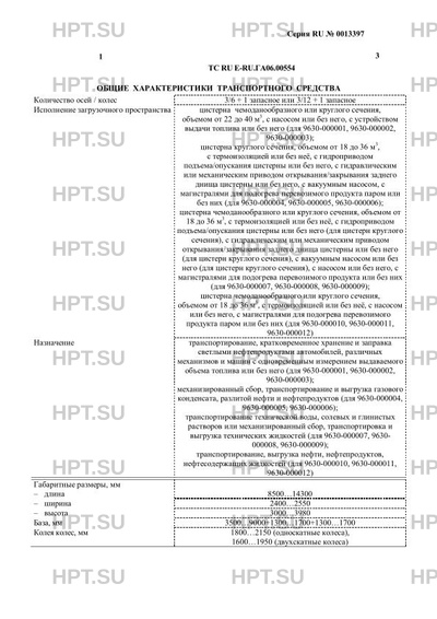 | Исполнение загрузочного пространства | цистерна чемоданообразного или круглого сечения, объемом от 22 до 40 м3 , с насосом или без него, с устройством выдачи топлива или без него (для 9630-000001, 9630-000002, 9630-000003); цистерна круглого сечения, объемом от 18 до 36 м3 , с термоизоляцией или без неё, с гидроприводом подъема/опускания цистерны или без него, с гидравлическим или механическим приводом открывания/закрывания заднего днища цистерны или без него, с вакуумным насосом, с магистралями для подогрева перевозимого продукта паром или без них (для 9630-000004, 9630-000005, 9630-000006); цистерна чемоданообразного или круглого сечения, объемом от 18 до 36 м3 , с термоизоляцией или без неё, с гидроприводом подъема/опускания цистерны или без него (для цистерн круглого сечения), с гидравлическим или механическим приводом открывания/закрывания заднего днища цистерны или без него (для цистерн круглого сечения), с вакуумным насосом или без него (для цистерн круглого сечения), с насосом или без него, с магистралями для подогрева перевозимого продукта или без них (для 9630-000007, 9630-000008, 9630-000009); цистерна чемоданообразного или круглого сечения, объемом от 18 до 36 м3 , с термоизоляцией или без неё, с насосом или без него, с магистралями для подогрева перевозимого продукта паром или без них (для 9630-000010, 9630-000011, 9630-000012) |