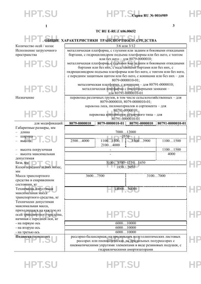 | Тип ТС | Транспортные средства не предназначены для перевозки опасных грузов. В связи с несоответствием параметров транспортных средств значениям, установленным в пункте 2.2 приложения № 5 к техническому регламенту Таможенного союза "О безопасности колесных транспортных средств", для передвижения транспортных средств по территории государств - членов Таможенного союза необходимо оформление специального разрешения, в случае фактического превышения установленных значений. |