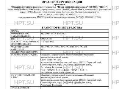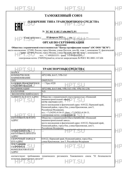 | Тип ТС | В связи c несоответствием параметров значениям, установленным в пунктах 1.1, 1.2 приложения № 5 к техническому регламенту Таможенного союза «О безопасности колесных транспортных средств», для передвижения транспортных средств по территории государств - членов Таможенного союза необходимо оформление специального разрешения, в случае фактического превышения установленных значений. Транспортные средства не предназначены для перевозки пищевых продуктов и опасных грузов. Наименование транспортного средства, определяемое его назначением: для АР32/40Б - агрегат для ремонта, бурения и освоения скважин самоходный; для БА15.06Б - буровой агрегат самоходный; для УРБ-3А3.13И, УРБ-3А3.23Б - установка буровая самоходная. Показатели масс не могут превышать максимальных для конкретного шасси, указанных в одобрении типа шасси и в его сопроводительной документации. Допускается использование в качестве базовых: шасси, выпущенных по предыдущим версиям ОДОБРЕНИЯ ТИПА ШАССИ, с общими техническими характеристиками, соответствующими указанным в приложении № 1 к настоящему ОДОБРЕНИЮ ТИПА ТРАНСПОРТНОГО СРЕДСТВА, с применявшимся ранее обозначениями типа 4320 модификаций 4320-1951-60, 4320-1951-62, 4320-1951-70, 4320-1951-72, 4320-1951-74, 4320-6951-70, 4320-6951-72, 4320-6951-74. Коммерческое наименование / Шасси (модификация) / Модификации: АР32/40Б / 4320-60, 4320-70, 4320-72, 4320-74, 4320-62 / АР32/40Б; БА15/ 4320-60, 4320-70, 4320-72, 4320-74, 4320-62 / БА15.06Б; УРБ-3А3 / 4320-60, 4320-70, 4320-72, 4320-74, 4320-62 / УРБ-3А3.13И; УРБ-3А3 / 4320-70, 4320-72, 4320-74 / УРБ-3А3.23Б. |